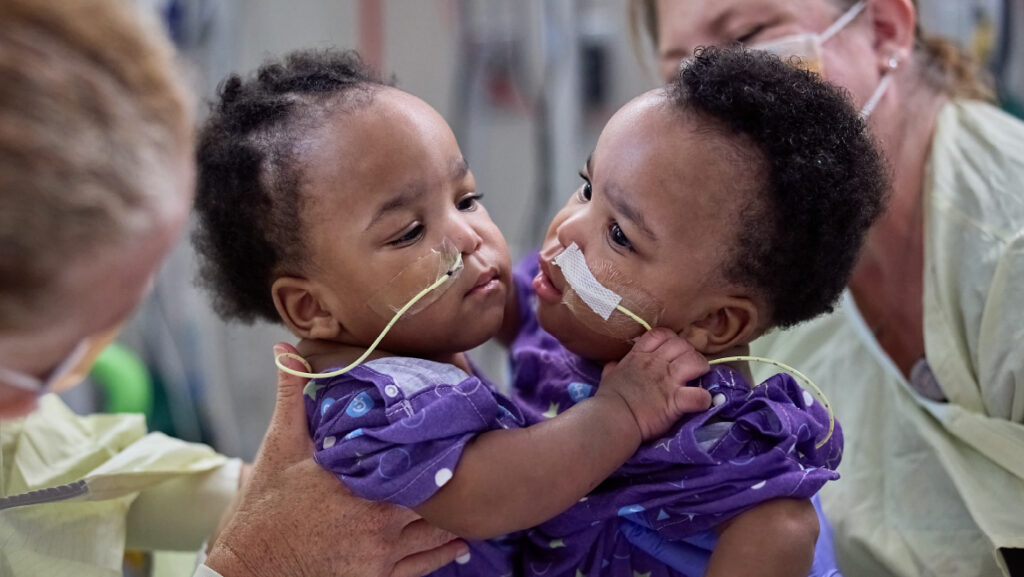 Conjoined twins Amari and Javar were born weighing 3 pounds combined. They stayed in CHOP’s N/IICU as they grew and gained strength for surgery. When they were almost 11 months old, a team of more than two dozen specialists performed an eight-hour procedure to separate them. Now the twins are happy, healthy and learning how to hit milestones in two individual bodies. They are CHOP’s 32nd set of successfully separated conjoined twins.